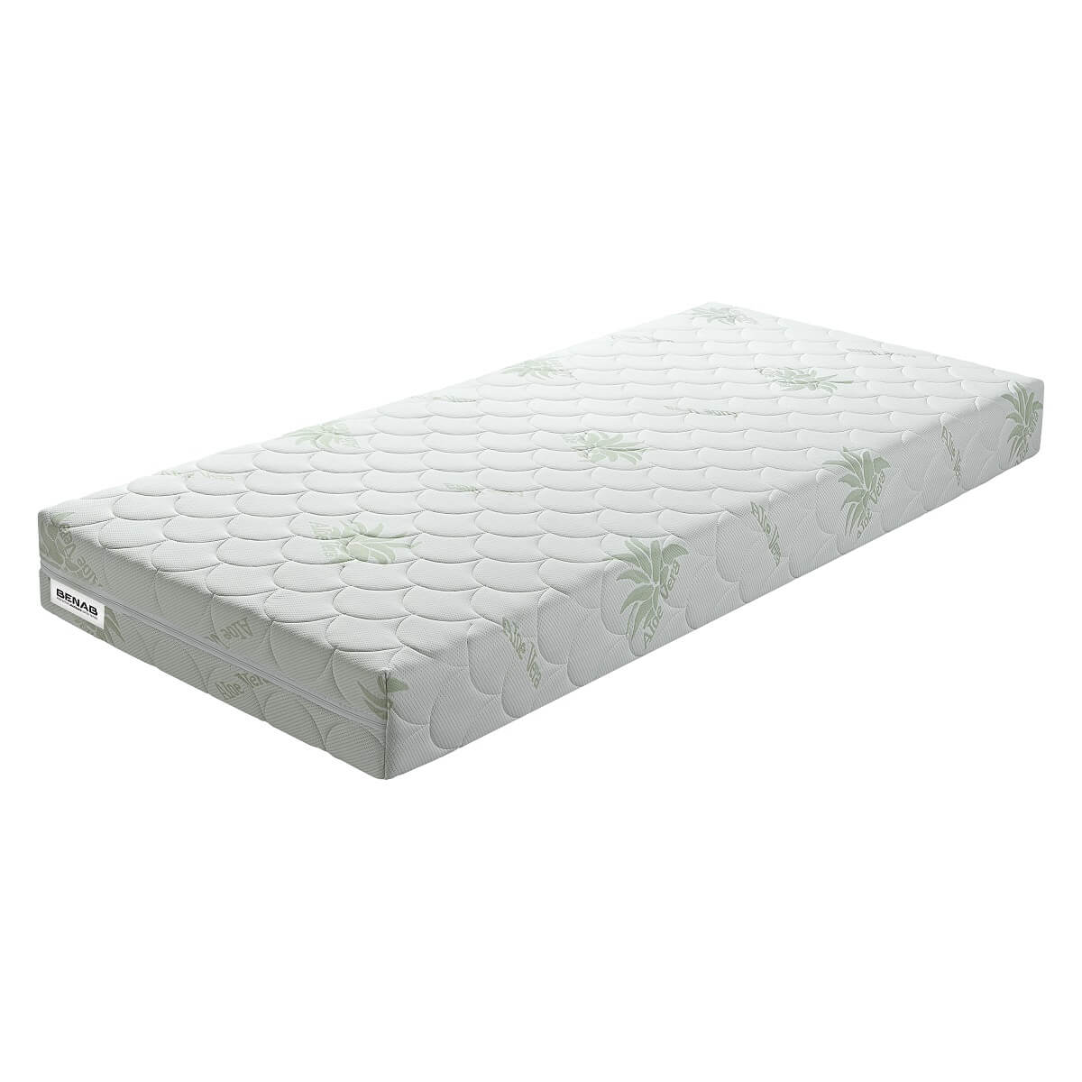 Extra pohodlný a vysoký matrac z elastickej BIO peny so špeciálnym 7-zónovým odvetrávaným systémom. • Obdobný matrac na výšku 20 cm ako napr. matrac OMEGA FLEX, len s ďaleko dlhšou životnosťou, vďaka hustejším penám, čím hustejšia pena, tým dlhšia životnosť matraca, obojstranne použiteľný a cenovo výhodný zdravotný matrac • matrac a jeho skladba zabraňuje prehriatiu organizmu a tým zvyšuje komfort počas spánku • odporúčaný rošt lamelový • štandardné vyhotovenie v poťahu – Aloe Vera • BIO pena 40 kg/m3, PUR pena 35 kg/m3, PUR pena 30 kg/m3 Poťah - ALOE VERA • poťahová látka s výťažkami z tejto rastliny obsahuje prevažne enzýmy, minerálne látky a aminokyseliny, ktoré veľmi pozitívne pôsobia na pokožku a posilňujú relaxačné účinky spánku • príjemne mäkký poťah so schopnosťou regenerácie pokožky ľudského tela, vlastnosti tejto látky zaručujú dostatočnú hygienu • certifikovaný a zdravotne nezávadný OEKO-TEX štandard • zloženie: 85 % polyester; 15 % viskóza, obohatený o výťažky z aloe vera, poťah prešitý s klimatizačnou výplňou, PES vláknom 250 gr/m2 • antibakteriálny, antiroztočový, odzipsovateľný a prateľný do 60°C