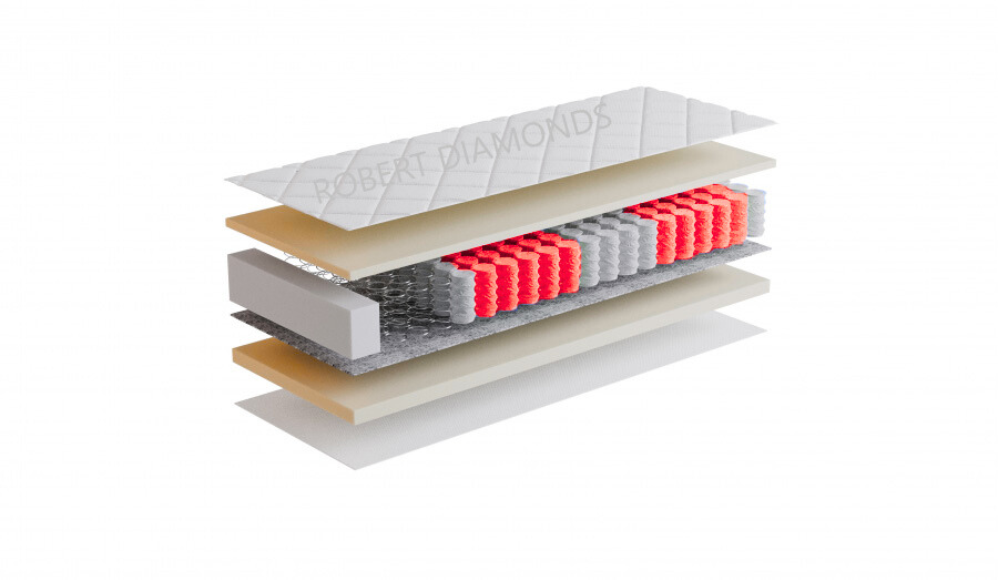 Jadro matraca tvorí kombinácia modernej PUR peny s hustotou 38 kg/m³ a taštičkových pružín (STANDART POCKET), čo zabezpečuje skvelú flexibilitu a prispôsobenie sa tvaru tela. PUR pena sa optimálne prispôsobuje krivkám vášho tela a zároveň ponúka vynikajúcu priedušnosť, ktorá pomáha udržiavať ideálnu teplotu a zamedzuje vzniku vlhkosti, čím vytvára zdravé spánkové prostredie.