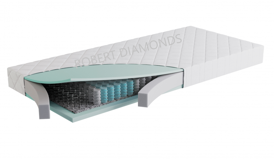 Jadro matraca kombinuje kvalitnú PUR penu s hustotou 38 kg/m³ a taštičkové pružiny (STANDART POCKET), čo zabezpečuje vynikajúcu flexibilitu a ideálnu podporu. PUR pena sa dokonale prispôsobuje tvaru vášho tela a reguluje teplotu počas spánku, čím vytvára zdravé a pohodlné prostredie bez nadmernej vlhkosti.
