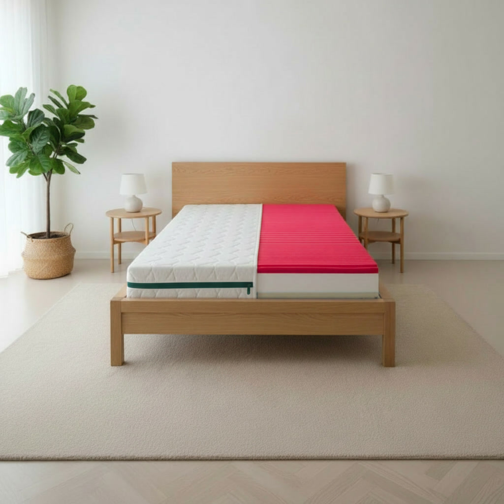 Matrac má obojstranné prevedenie s dvomi stupňami tuhosti – jedna strana ponúka strednú tuhosť (3) a druhá stredne tvrdú (4). Vďaka tomu si môžete matrac prispôsobiť podľa aktuálnych preferencií. Pravidelným otáčaním zároveň predĺžite jeho životnosť a zachováte hygienu spánku.