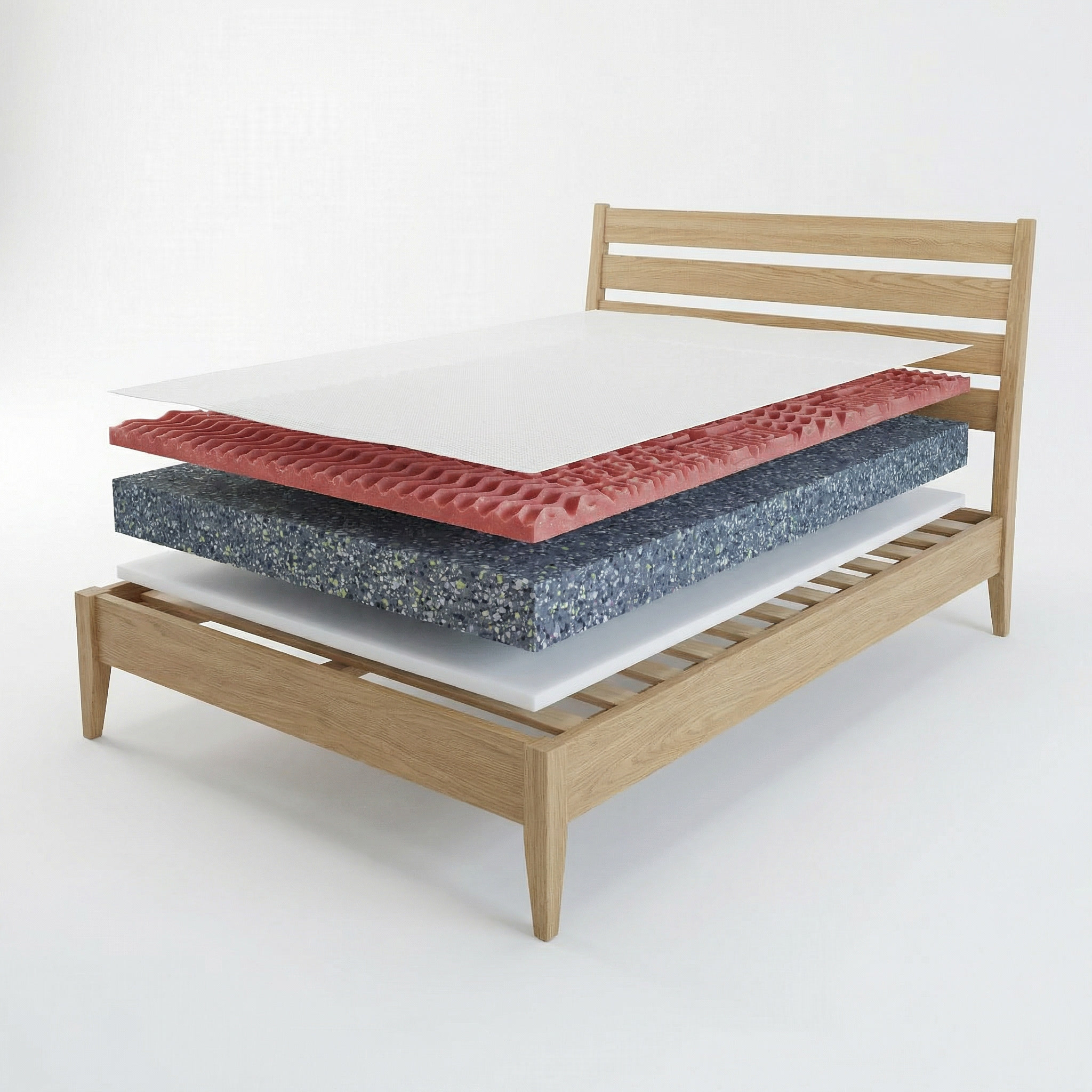 POE/RE PENA RE pena je recyklovaná drvená polyuretánová pena a vyrába sa spájaním rôznych materiálov pod silným tlakom. RE pena dodáva matracom vyššiu tuhosť a teda aj nosnosť.