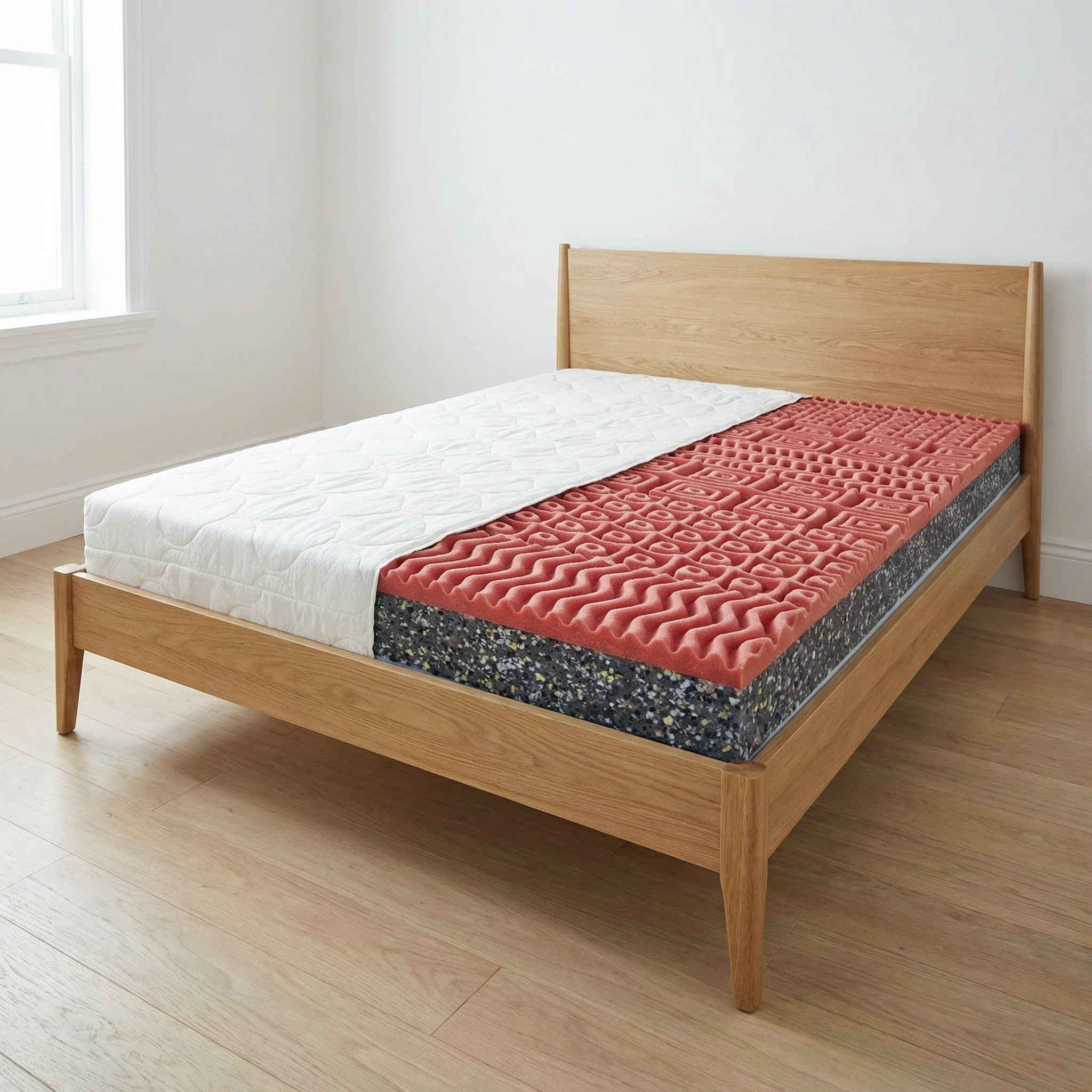 POE/RE PENA RE pena je recyklovaná drvená polyuretánová pena a vyrába sa spájaním rôznych materiálov pod silným tlakom. RE pena dodáva matracom vyššiu tuhosť a teda aj nosnosť.