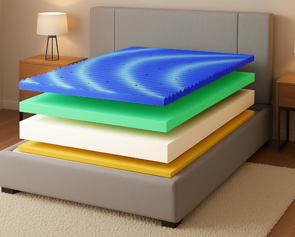 Použitý materiál PUR pena 35 kg/m3, HR pena 40 kg/m3, HYBRID 55 kg/m3