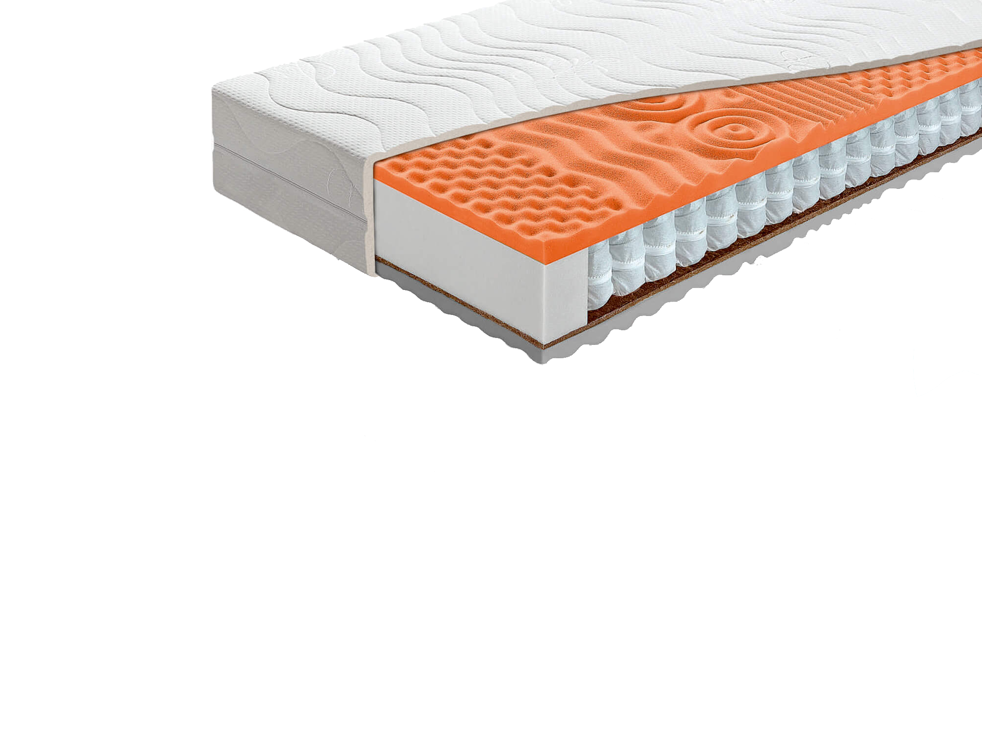 Použitý materiál PUR PENA, KOKOSOVÁ VRSTVA, TAŠTIČKOVÁ PRUŽINA 7 ZÓN