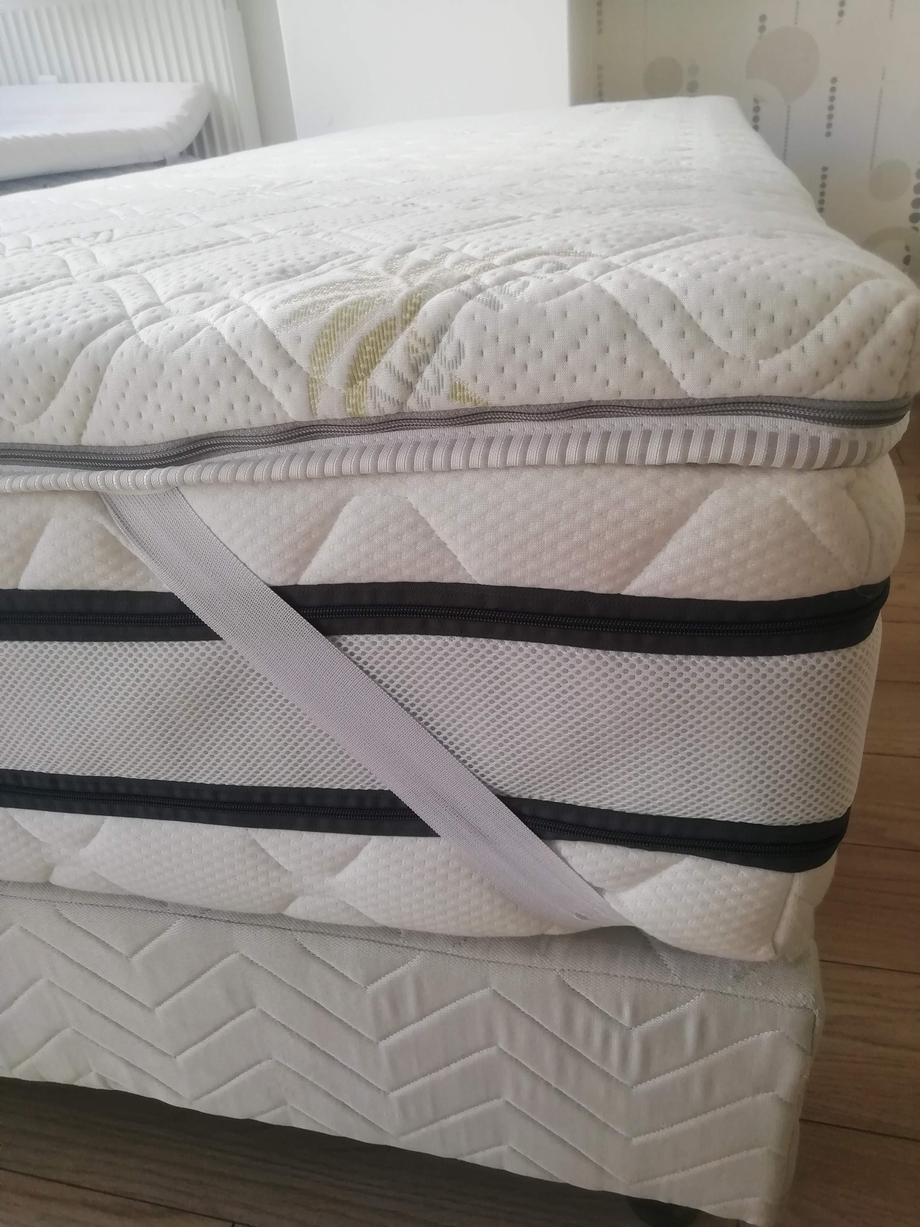 Po bokoch su našité široké upínacie pásy,tak ako ich vidíte na obrázku, vďaka ktorým sa jednoducho pripevní o spodný matrac, a tak sa nešmýka po povrchu a je na pevno,čo ho robí výnimočným z praktického hľadiska. Poťah je odzipsovateľný a prateľný na 40°. Topper vyrábame v akýchkoľvek atypických rozmeroch,v prípade záujmu o atyp nám napíšte alebo zavolajte a vyrobíme Vám ho na mieru. Ručne šitý Topper PRINCE má predĺženú 5 ročnú zaruku.